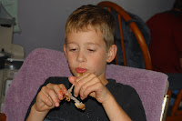 Later this evening, Eric managed to pull out one of his loose teeth on the top.